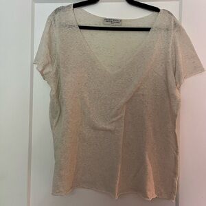 Ivory/undyed colour. Size M. Very good condition. Size tag removed - feels like linen. Some variation in the fabric (natural, intended(. Slightly sheer.