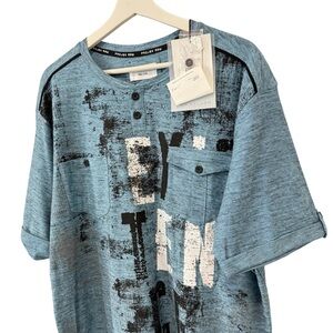 NWT Projek Raw Graphic Print Short Sleeve Henley Shirt Size XXL Sky Blue