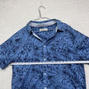 Projek Raw Shirt Mens L Floral Hawaiian AOP Summer Party Light Breathable Blue