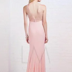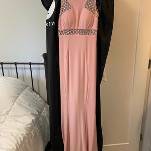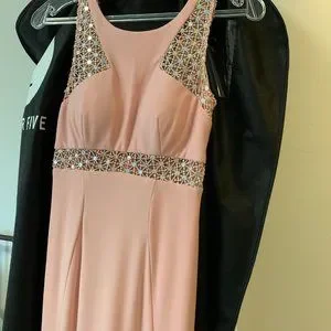 Blush/rose prom dress with silver detailing. Worn once, in excellent condition. LM by Mignon HY1221 Illusion Prom Gown.