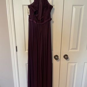 David’s Bridal Long Lace/Mesh High Neckline Prom/Bridesmaid Dress