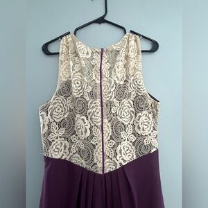 Purple prom dress with an off white lace top. Zipper back. 47cm armpit to armpit, 41 cm waist and 157cm in length!
