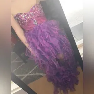 Prom Dress, High Low, Ruffle, Rhinestone, Strapless