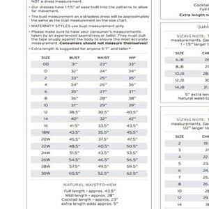 See size chart for measures. IT IS A DESIGNER SIZE 14, but they are made really small, so I put size 10, as this will fit a "regular" size 10 or so. The designer pic is to show fit/styling (of this actual dress).