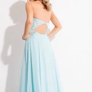 Past Season STORE SAMPLE in great condition. I suggest everyone use measurements, not size number, when shopping formal gowns, as they vary by brand. Bust 37", Waist 329", Hip 40". Show stopping pink color gown with beautiful, unique beading on the fitted bodice with sweetheart neckline. Flowing A-Line skirt. Note the back picture is not the colour of the gown, hard to capture the back on my mannequin so I used the stock photo.