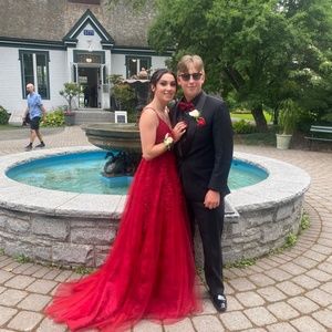 Size small red prom dress, selling for 400 or best asking price! Like brand new only worn once.
