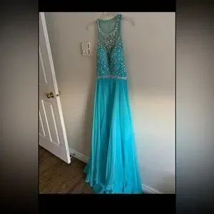 Only used for a couple hours, small hole towards the very end of the dress from someone’s high heel shoe (it is very long) and can fixed.