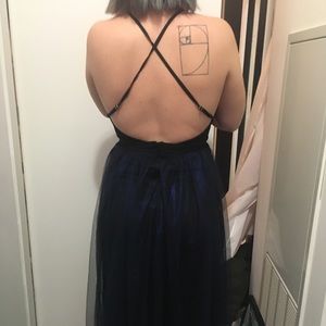 Holographic Navy Blue dress with 2 slits for each leg, adjustable straps, length unaltered