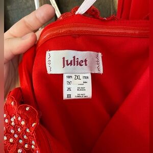 Stunning red strapless formal dress that exudes elegance and sophistication. Featuring a beautifully beaded bodice and a flowing skirt, this dress is perfect for prom, weddings, or any special occasion. Size 2XL (fits like size 16), never worn or altered and in excellent condition. Make a statement in this eye-catching piece that will turn heads wherever you go! DM for more details!
