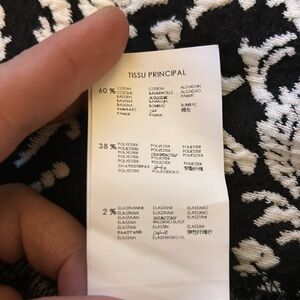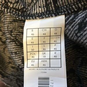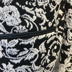 Chic black and cream jacket with intricate floral patterns. Is is a short style with zipper front. Faux leather trim. Front pockets. It is not lined. Cotton blend with some stretch. 46EU = 14 US. Purchased in Italy. Excellent condition. Measurements in pics: pit pit, and length. Ideal for versatile styling.