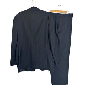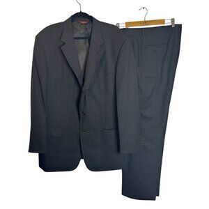 Pronto Uomo Couture Italian Wool Suit 48L Black Stripe Wedding Prom Formal