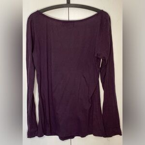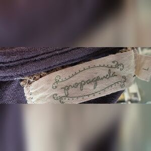 Propaganda long sleeve purple top with pleating on cuffs and neckline. Lg