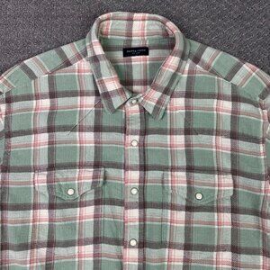 Proper Cloth Pearl Snap Flannel Shirt Men's XL Faded Green Rose Western Jackson