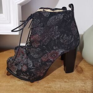 Prophecy Size US 7.5 EU 38 Floral Pattern Lace Up Side Zipper Ankle Boots Bootie