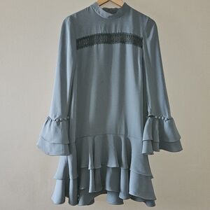Prose & Poetry Marcel Feminine Cutout Long Sleeve Ruffle Mini Sage Dress Size M.