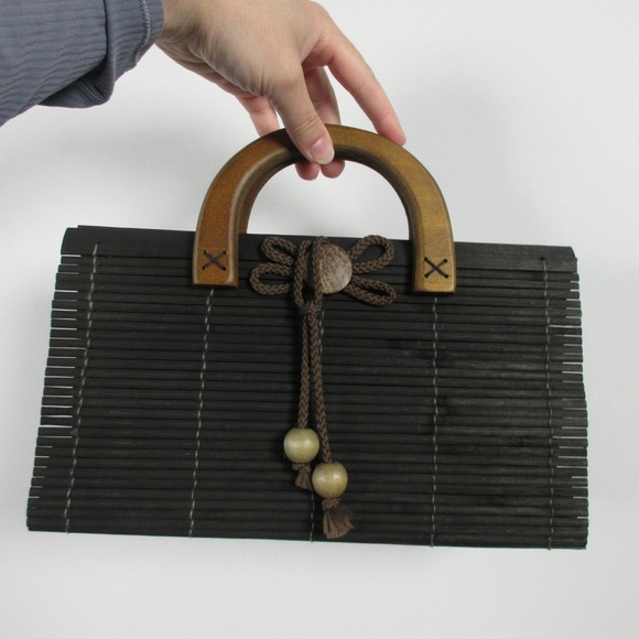 Protoplasmina Vintage Wood Slat Bamboo Handbag Beads Purse Boho y2k Hippie 244
