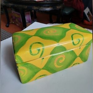 Psychedelic Yellow/Green Ceramic Box. Has a couple of nicks, nothing major. Great for trinket storage.