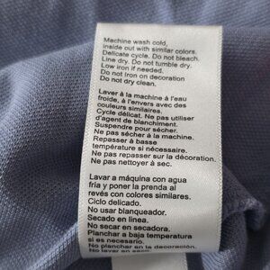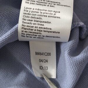Color: light lavender purple base with very dark navy collar, cuffs an bunny embroidery on left chest, pink inner side slits lining