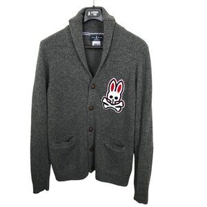 Psycho Bunny Shawl Neck Gray 100% Wool Cardigan Size M