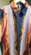 Elegant shirt with chain and geometric patterns. Features a blend of orange, yellow, and black tones.