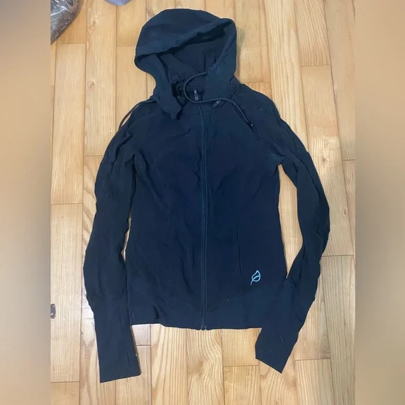 Sleek black hoodie with full zip. Comfortable and stylish for casual wear.