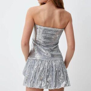 Puffball Mini Dress sequined balloon strapless tube sparkly sequin silver