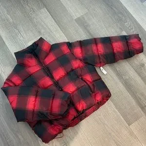 New with tags. Red and black checkered puffer coat. Zipper closure with zipper pockets. Water resistant. Never worn.