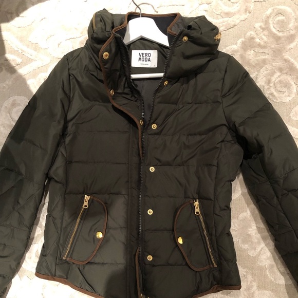Olive green puffer jacket in terrific condition