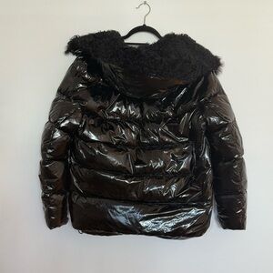 Yves Salomon - Black puffy jacket with hood. The hood is lined with lamb fur.