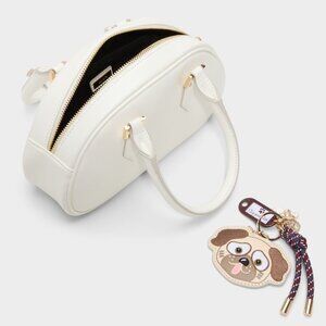 Half-moon satchel in white leather, finished with a playful pug charm and polished gold hardware that catches the eye and whispers a wink of whimsy as you stride through the day. Carry it with pastels for coffee catch-ups, or sling it over joggers on dog-park runs to finish a playful, ready-for-anything look.