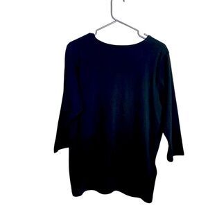This cute and comfy T-shirt is in excellent condition and is definitely a quality piece. The manufacturers tag is missing, but the quality shines through in the fabric as well as the embellishments on the front.