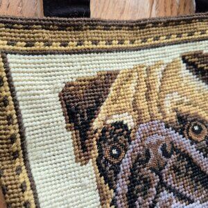 Express your love of Pugs by "toting" around a fashionable Pug Tote Bag! This adorable needlepoint bag is hand-stitched and features a colorful depiction of a Pug on the front. Lightweight and stylish, the bag also has a velvet backing. It can be used for every occasion, and has lots of room to carry all of your dog gear.