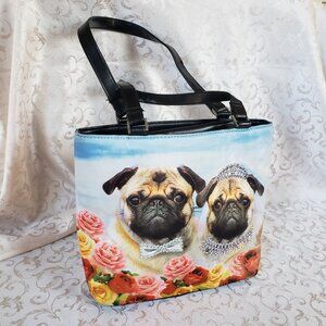 Pugs & Roses Rhinestone studded handbag. Bride and groom couple