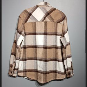 Pull & Bear Beige & White Cotton & Wool Plaid Button Overshirt Jacket (Men's L)