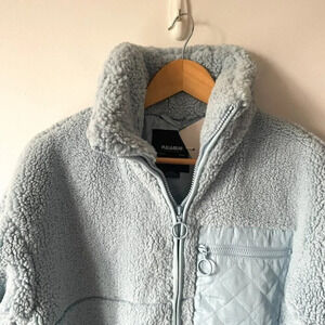 Pull & Bear Soft Sherpa Zip Up Jacket Sweater NWT Light Blue Size XS