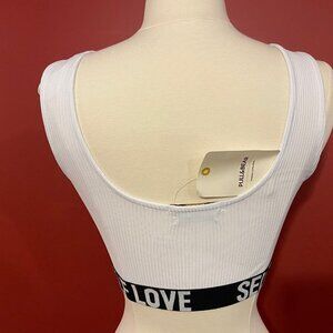 Pull & Bear Women's White Sports Top with Stripe - Size Small - NWT. Main fabric: 91% polyester, 9% elastane. Elastic: 57% polyamide, 31% elastane, 12% polyester.