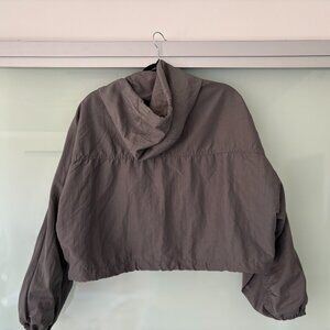 Pull and Bear, forest green cropped zip-up hoodie. Lightweight, windbreaker type material with pockets.