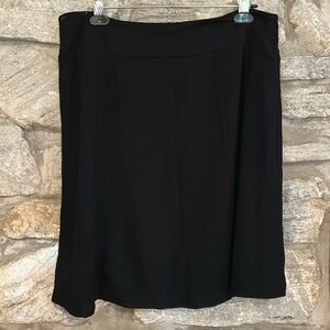This classic black skirt is perfect for any occasion. Its sleek design offers a timeless look that pairs well with any top. A must-have addition to your wardrobe. Reitman’s former size 11=12 today. Mid weight knit material. Excellent condition and never put in dryer. Measurements in pics: waist and length.