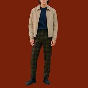 Elevate your fall/winter wardrobe with these Pull&Bear slim-fit plaid trousers. Made in Morocco, these pants feature a timeless brown and black checkered pattern with a modern slim tapered cut. Easy to style casually with sneakers or dressed up with loafers, they give off a streetwear meets retro preppy vibe.