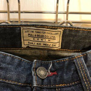 Pull&Bear Co. Men's Slim Fit 5 Pocket Whiskered Denim Jeans Blue Size 34