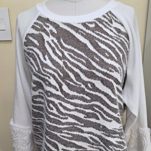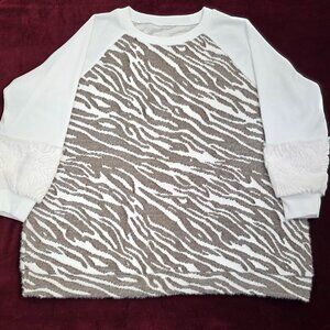 Unique style pullover made from very soft fabric and fur insert sleeves.