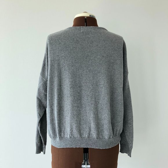 Preowned condition in excellent shape with no visible flaws. Content and size tag missing but think sweater is a wool blend. Machine washable on delicate cycle, in cold water and in laundry bag.