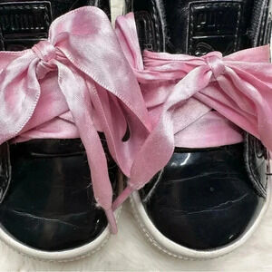 Puma Basket Heart Patent Black Sneakers Pink Laces Size 8