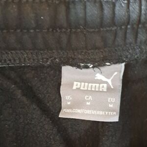 Comfortable black pants with Puma branding. Perfect for workouts. bottom cuff unrolling