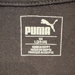 Sleek black tee featuring iconic white Puma logo. Comfortable and stylish.