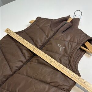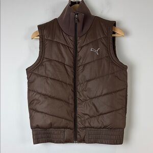 Stylish brown puffer vest by Puma. Features a sleek design with a front zipper.