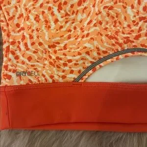 Coral top with dynamic pattern. Racerback style for comfort.