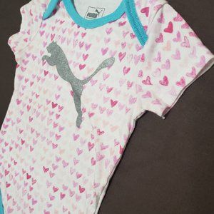 Puma Diaper Shirt Heart Pattern Short Sleeve Snap Closure Size 12 Months