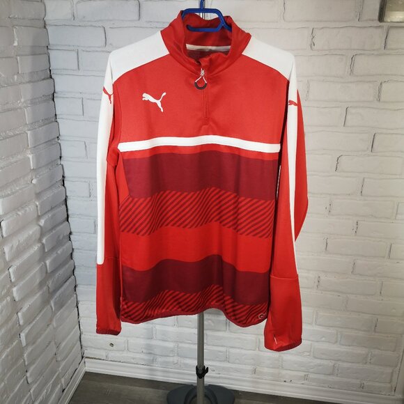 Puma Dry Cell Men's Size Large Red & White 1/4 Zip Closure Pullover