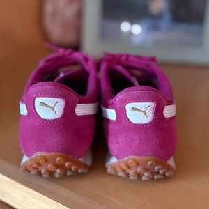 Such a fun sneaker in a great magenta color. Some minor over all wear but still in great condition especially if given a small clean.